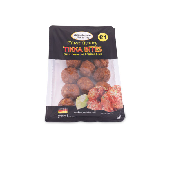 Finest quality Tikka flavoured chicken bites Ready to eat hot or cold INGREDIENTS/NUTRITION Ingredients Chicken Meat 80% (partially minced), Breadcrumbs