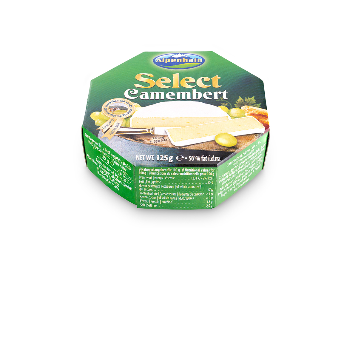 Pasteurized cow’s MILK; salt; non-animal rennet; lactic acid culture; Penicilium candidum
